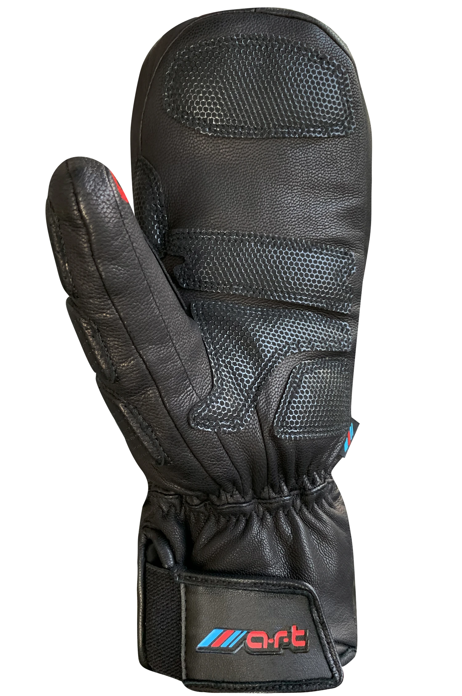 This alpine race performance leather fingermitt was inspired from our very own Race shield. With lighter protection, the all-leather shell has a grip palm overlay for optimal ski pole handling and its warm insulation allows long hours on the slopes. Part of the a.r.t. series that stand for Auclair Racing Technology certifying the utmost performance standard.